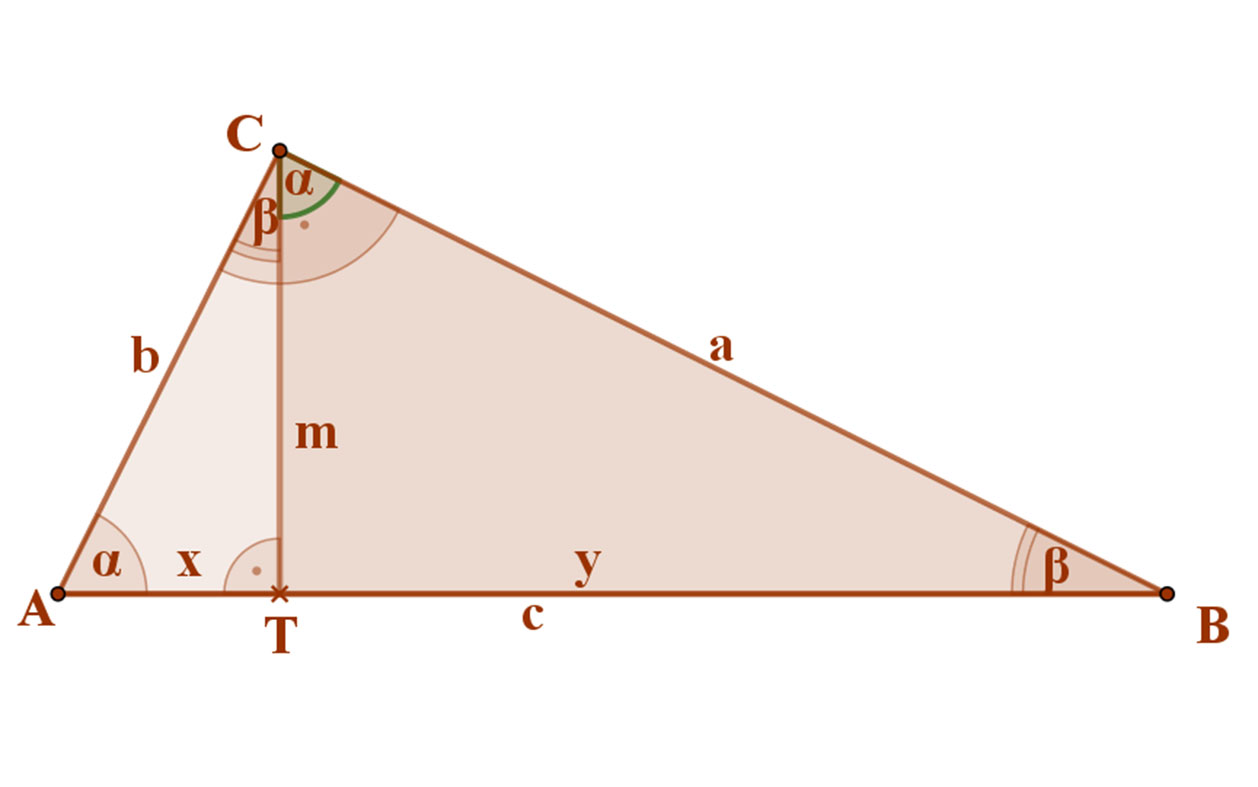 Hiszen az m magasság az ATCΔ-ben az α szöggel, míg BTCΔ-ben a β szöggel van szemben.