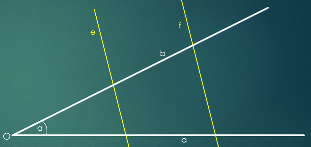 Vegyünk fel egy olyan tetszőleges egyenest (e), mely metszi a két szögszárat!