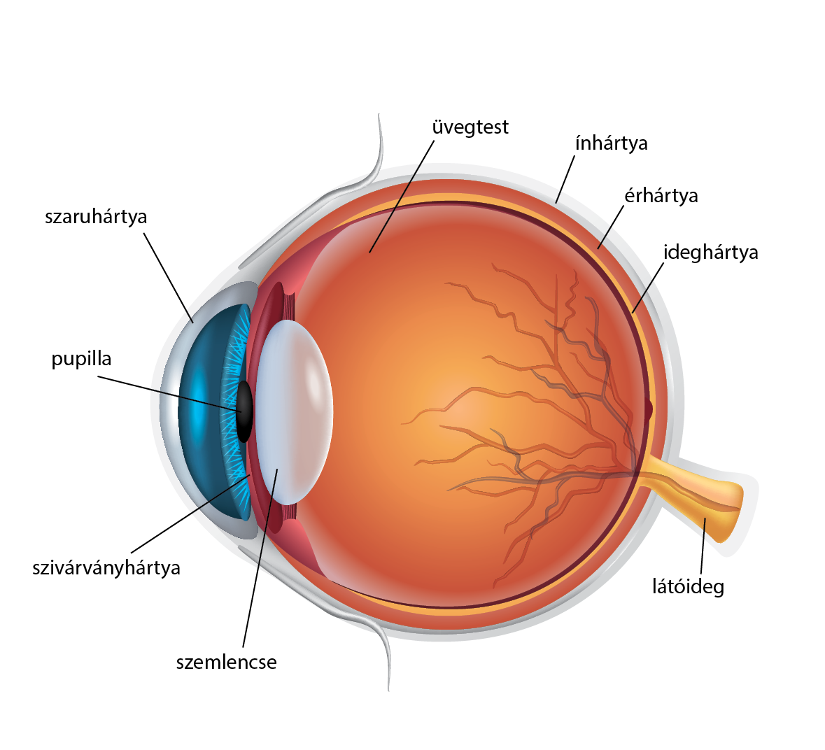 - Érhártya: az ínhártya alatt van; itt találhatók az erek, amik a tápanyagokat, és az oxigént szállítják a szemnek