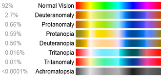 Ha a receptorok mennyisége csökkent vagy nem működnek megfelelően, akkor színtévesztésről (anomália)